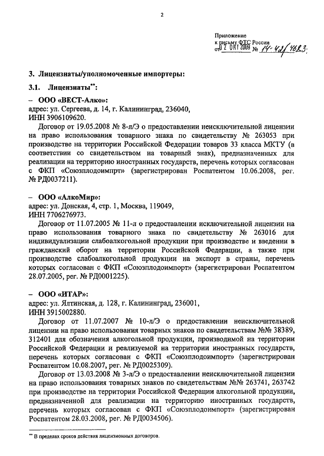 ПИСЬМО ФТС РФ от 02.10.2009 N 14-42/46834