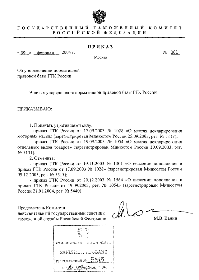 ПРИКАЗ ГТК РФ от 09.02.2004 N 181
