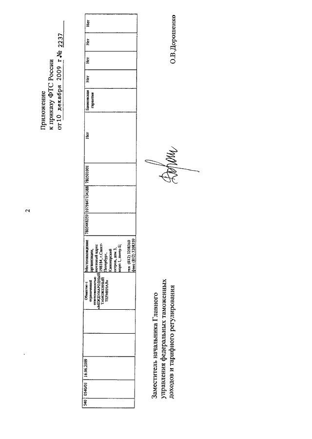 ПРИКАЗ ФТС РФ от 10.12.2009 N 2237