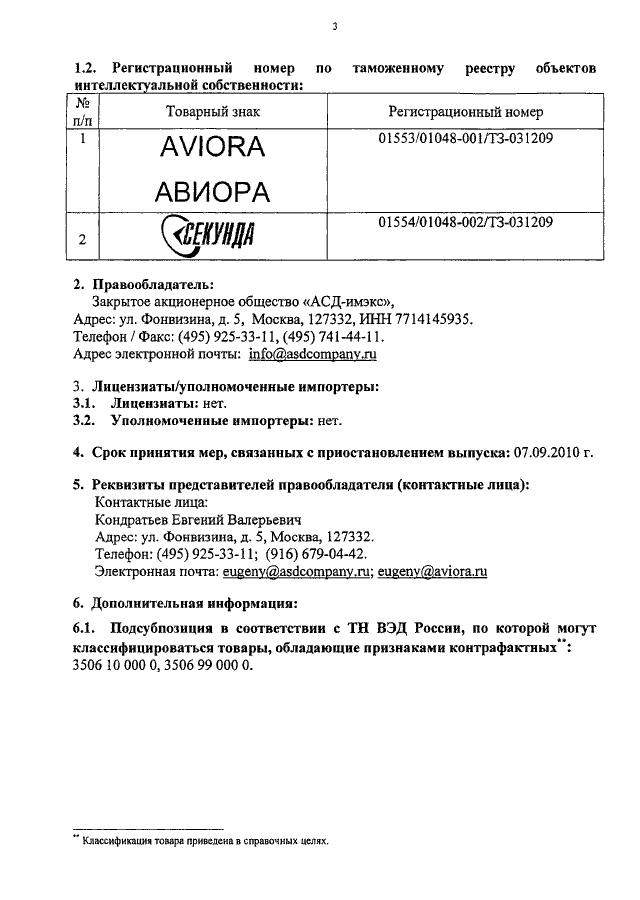 "О ТОВАРНЫХ ЗНАКАХ ЗАО "АСД-ИМЭКС"
