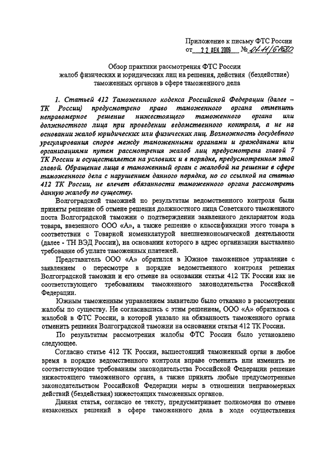 (вместе с "ОБЗОРОМ ПРАКТИКИ РАССМОТРЕНИЯ ФТС РОССИИ ЖАЛОБ ФИЗИЧЕСКИХ И ЮРИДИЧЕСКИХ ЛИЦ НА РЕШЕНИЯ, ДЕЙСТВИЯ (БЕЗДЕЙСТВИЕ) ТАМОЖЕННЫХ ОРГАНОВ В СФЕРЕ ТАМОЖЕННОГО ДЕЛА")