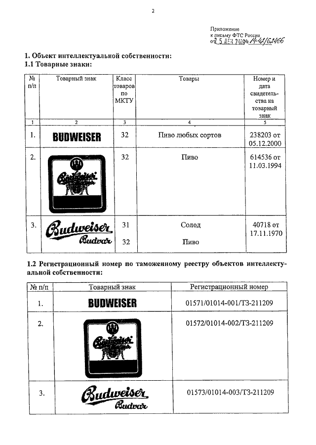 "О ТОВАРНЫХ ЗНАКАХ КОМПАНИИ "BUDWEISER BUDVAR, NATIONAL CORPORATION"