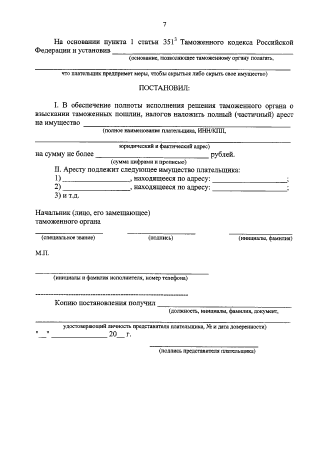 "ОБ УТВЕРЖДЕНИИ ФОРМ ДОКУМЕНТОВ О НАЛОЖЕНИИ (ОТМЕНЕ) АРЕСТА НА ИМУЩЕСТВО ПЛАТЕЛЬЩИКА В КАЧЕСТВЕ СПОСОБА ОБЕСПЕЧЕНИЯ ИСПОЛНЕНИЯ РЕШЕНИЯ ТАМОЖЕННОГО ОРГАНА О ВЗЫСКАНИИ ТАМОЖЕННЫХ ПОШЛИН, НАЛОГОВ ЗА СЧЕТ ИНОГО ИМУЩЕСТВА ПЛАТЕЛЬЩИКА"