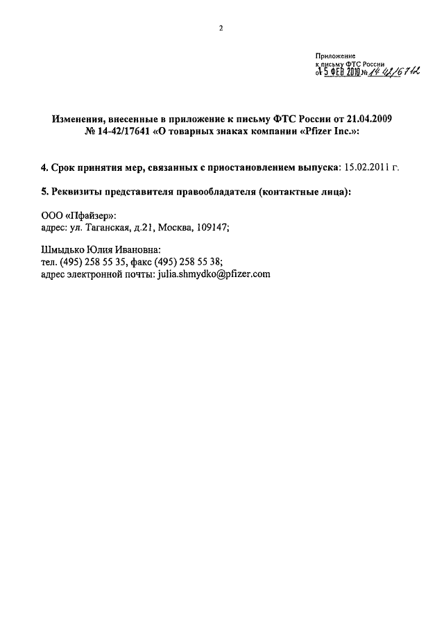 ПИСЬМО ФТС РФ от 15.02.2010 N 14-42/6712