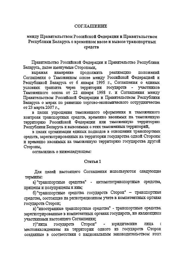 (вместе с "СОГЛАШЕНИЕМ МЕЖДУ ПРАВИТЕЛЬСТВОМ РОССИЙСКОЙ ФЕДЕРАЦИИ И ПРАВИТЕЛЬСТВОМ РЕСПУБЛИКИ БЕЛАРУСЬ О ВРЕМЕННОМ ВВОЗЕ И ВЫВОЗЕ ТРАНСПОРТНЫХ СРЕДСТВ" от 24.02.2010)