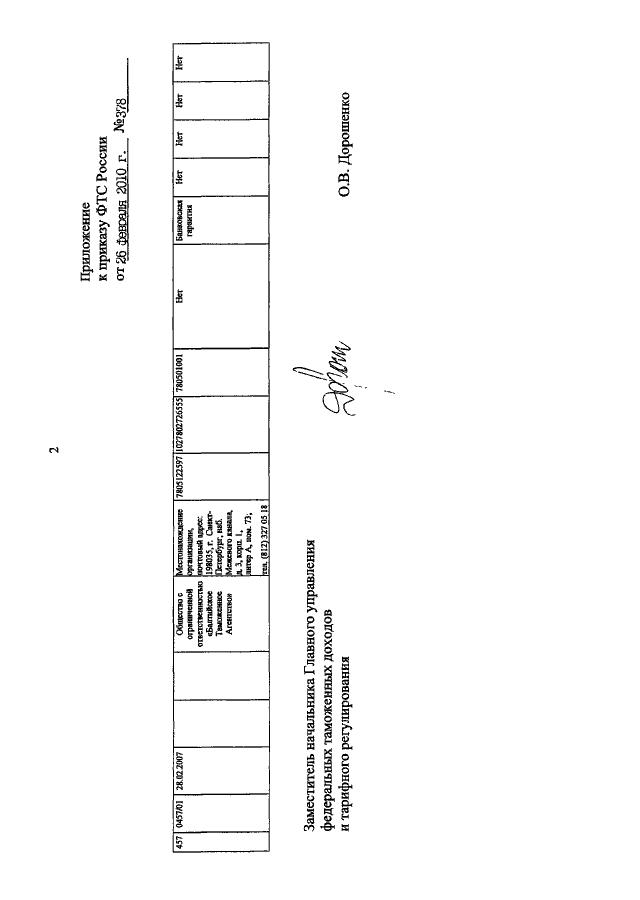 ПРИКАЗ ФТС РФ от 26.02.2010 N 378