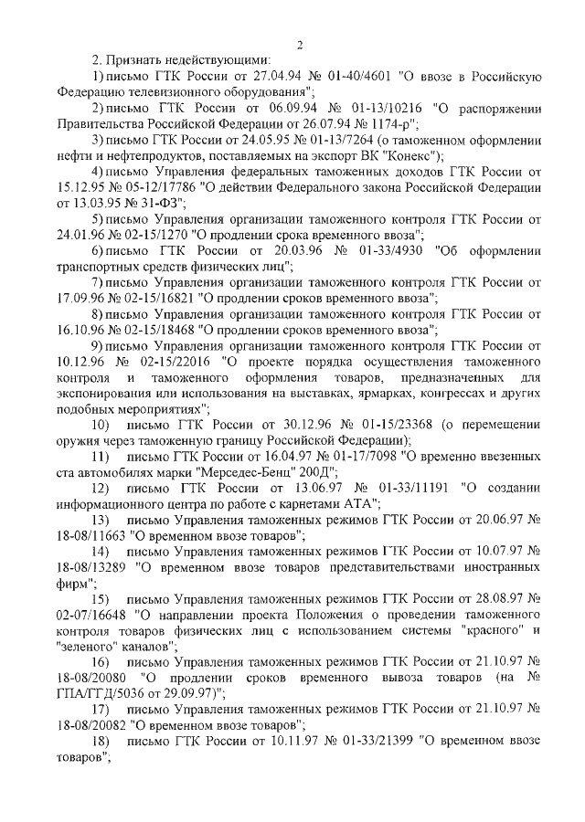 "О ПРИЗНАНИИ УТРАТИВШИМИ СИЛУ НЕКОТОРЫХ ПРАВОВЫХ АКТОВ ГТК РОССИИ"