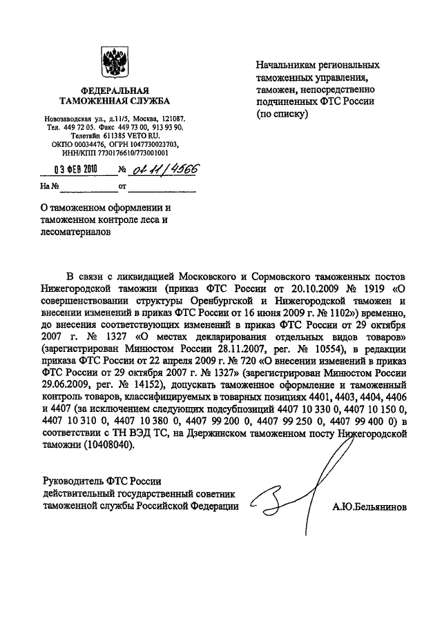 ПИСЬМО ФТС РФ от 03.02.2010 N 01-11/4566