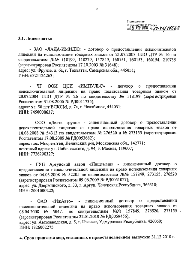 ПИСЬМО ФТС РФ от 09.04.2010 N 14-42/17529