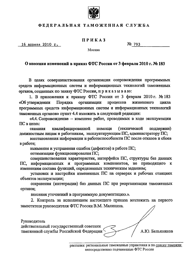 ПРИКАЗ ФТС РФ от 16.04.2010 N 793