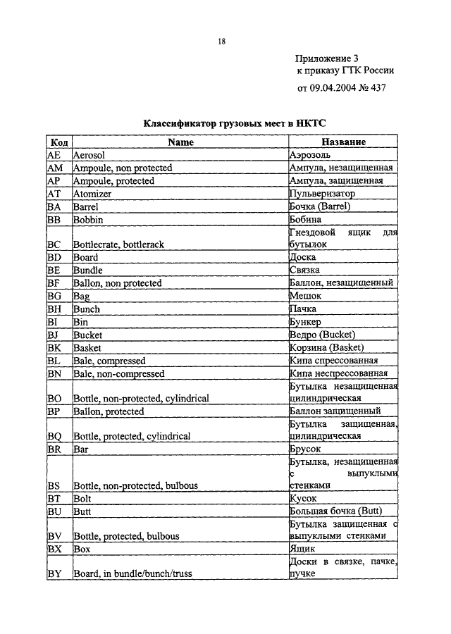 ПРИКАЗ ГТК РФ от 09.04.2004 N 437