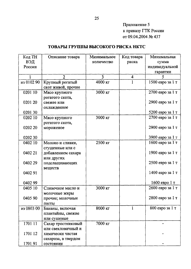 ПРИКАЗ ГТК РФ от 09.04.2004 N 437