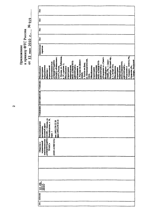 ПРИКАЗ ФТС РФ от 12.05.2010 N 919