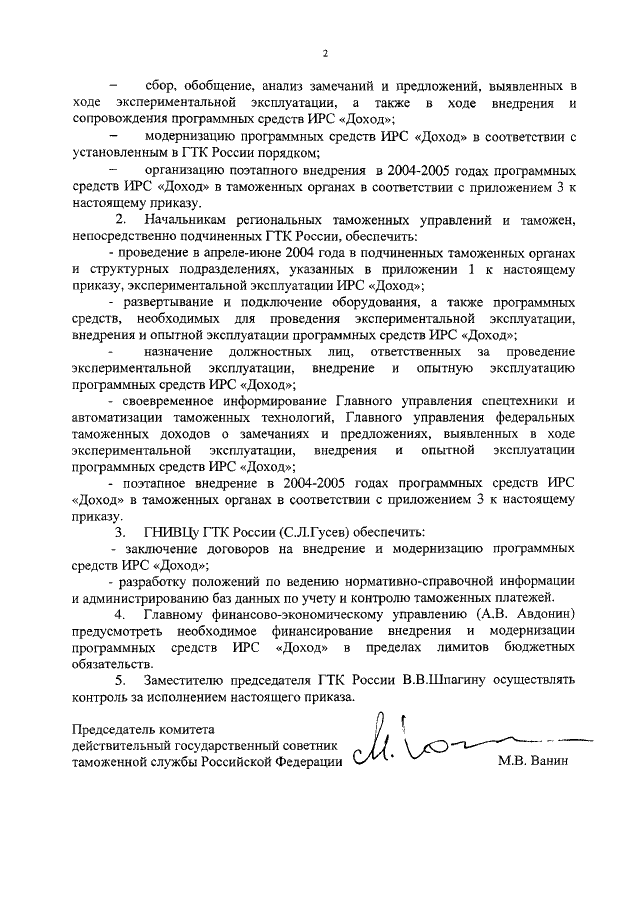 "О ВНЕДРЕНИИ В ОПЫТНУЮ ЭКСПЛУАТАЦИЮ ПРОГРАММНЫХ СРЕДСТВ ИНФОРМАЦИОННО - РАСЧЕТНОЙ СИСТЕМЫ КОНТРОЛЯ ТАМОЖЕННЫХ ПЛАТЕЖЕЙ"