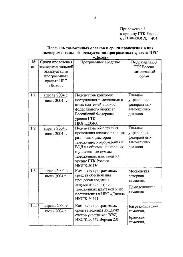 ПРИКАЗ ГТК РФ от 14.04.2004 N 464