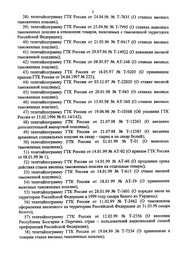 "О ПРИЗНАНИИ УТРАТИВШИМИ СИЛУ НЕКОТОРЫХ ПРАВОВЫХ АКТОВ ГТК РОССИИ ПО ВОПРОСАМ ТАРИФНОГО И НЕТАРИФНОГО РЕГУЛИРОВАНИЯ"