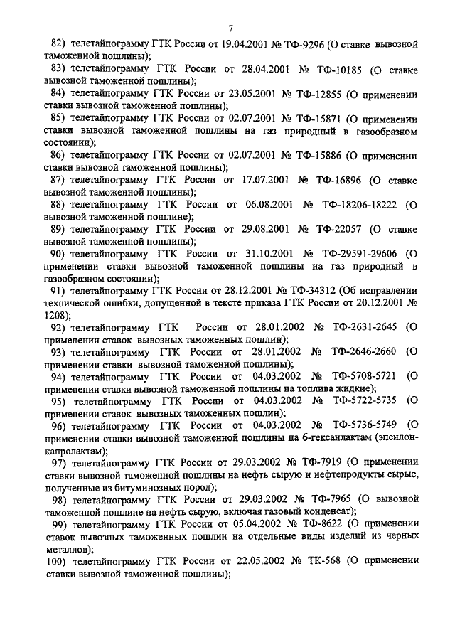 "О ПРИЗНАНИИ УТРАТИВШИМИ СИЛУ НЕКОТОРЫХ ПРАВОВЫХ АКТОВ ГТК РОССИИ ПО ВОПРОСАМ ТАРИФНОГО И НЕТАРИФНОГО РЕГУЛИРОВАНИЯ"