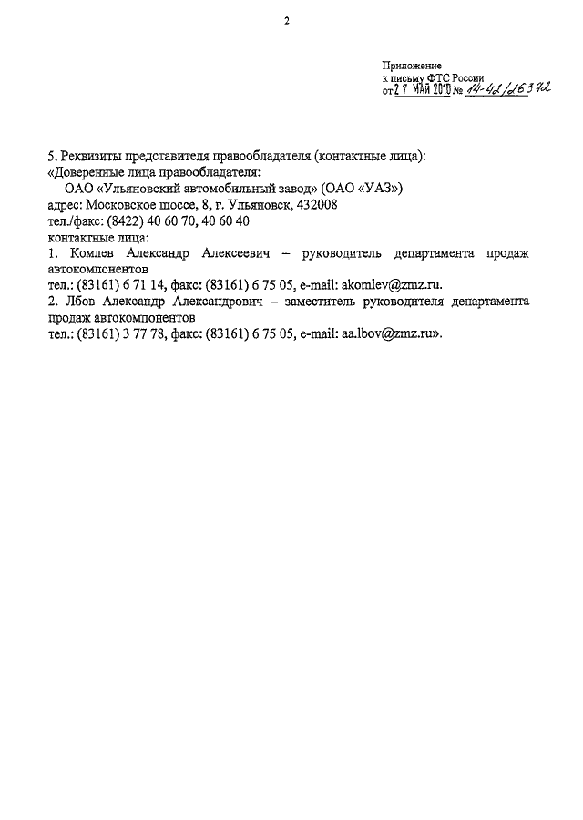 ПИСЬМО ФТС РФ от 27.05.2010 N 14-42/26372