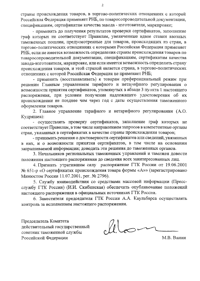 "О СЕРТИФИКАТАХ ПРОИСХОЖДЕНИЯ ТОВАРА ФОРМЫ "А"