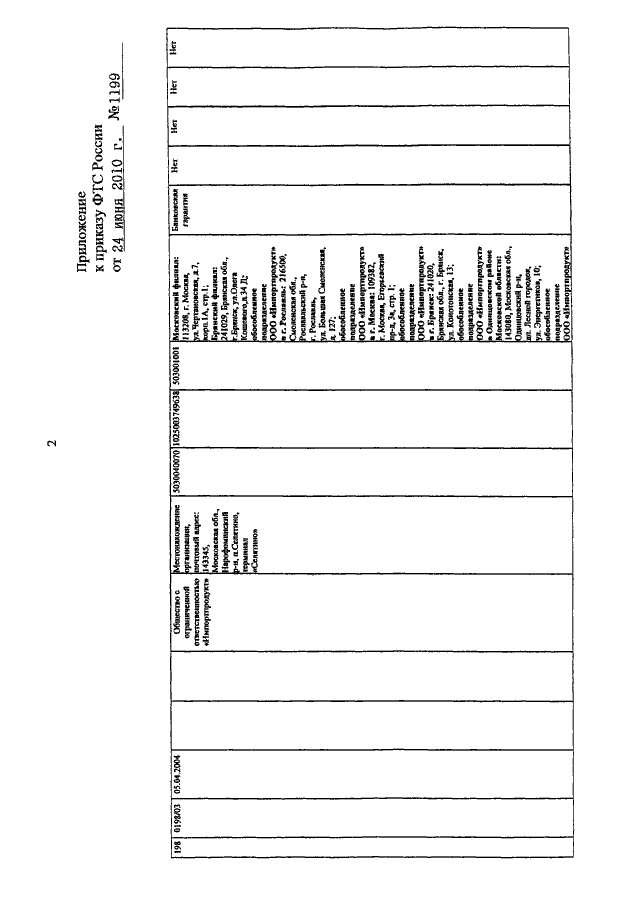 ПРИКАЗ ФТС РФ от 24.06.2010 N 1199