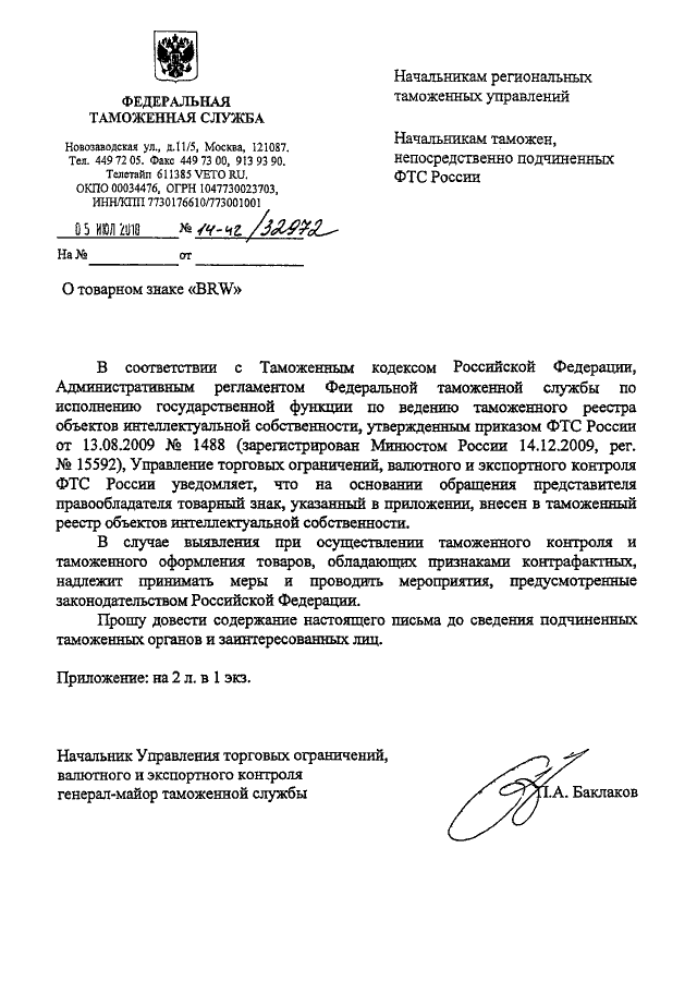 ПИСЬМО ФТС РФ от 05.07.2010 N 14-42/32972