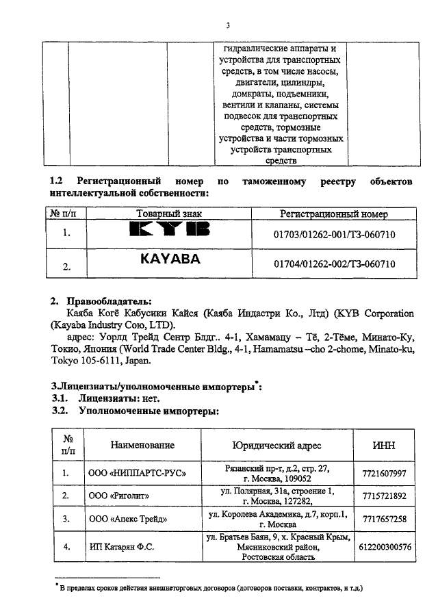 "О ТОВАРНЫХ ЗНАКАХ КОМПАНИИ "КАЯБА ИНДАСТРИ КО., ЛТД"