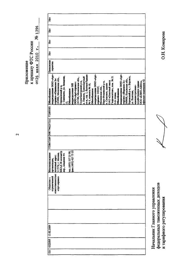 ПРИКАЗ ФТС РФ от 26.07.2010 N 1396