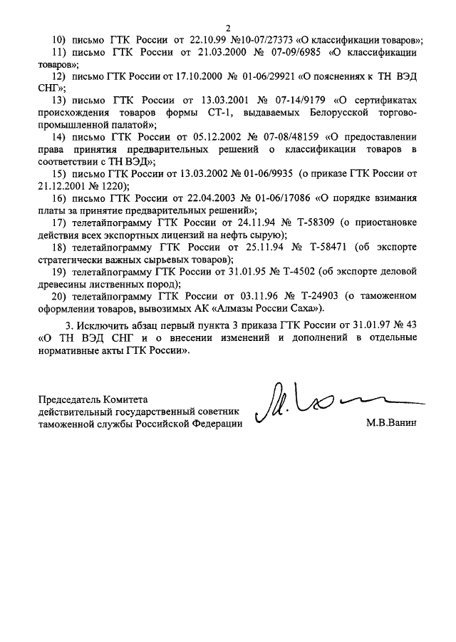 "О ПРИЗНАНИИ УТРАТИВШИМИ СИЛУ НЕКОТОРЫХ ПРАВОВЫХ АКТОВ ГТК РОССИИ ПО ВОПРОСАМ ТАРИФНОГО И НЕТАРИФНОГО РЕГУЛИРОВАНИЯ"