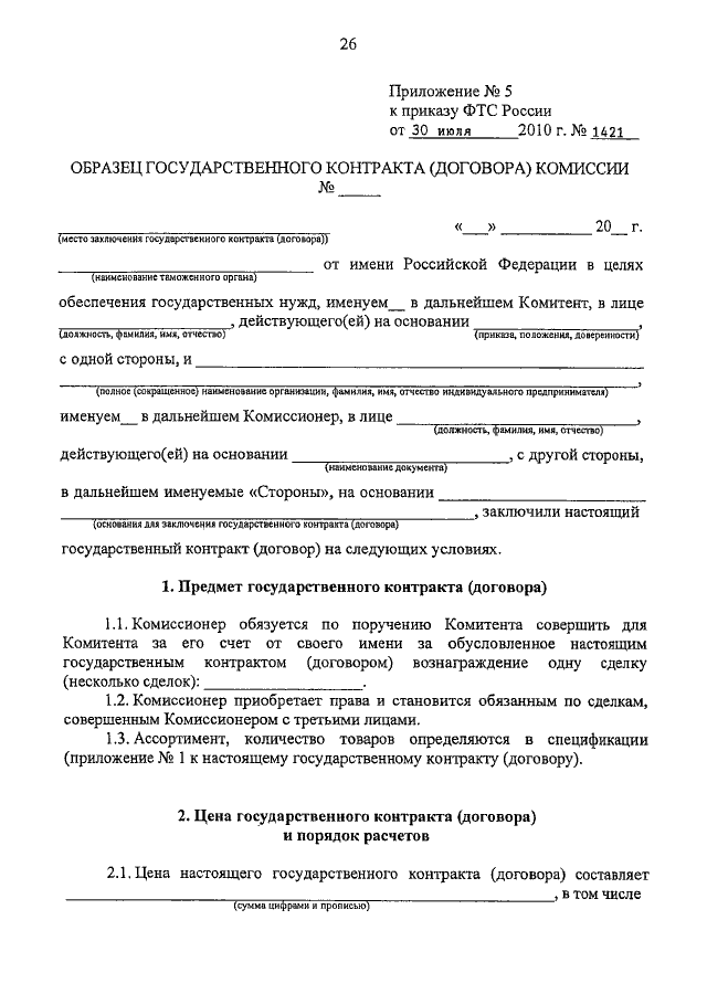 ПРИКАЗ ФТС РФ от 30.07.2010 N 1421