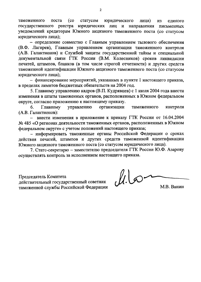 "О РЕОРГАНИЗАЦИИ ЮЖНОГО АКЦИЗНОГО ТАМОЖЕННОГО ПОСТА (СО СТАТУСОМ ЮРИДИЧЕСКОГО ЛИЦА)"