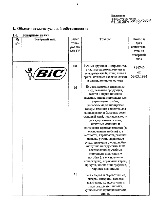 "О ТОВАРНОМ ЗНАКЕ "BIC"