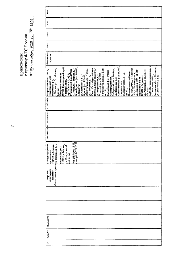 ПРИКАЗ ФТС РФ от 06.09.2010 N 1644