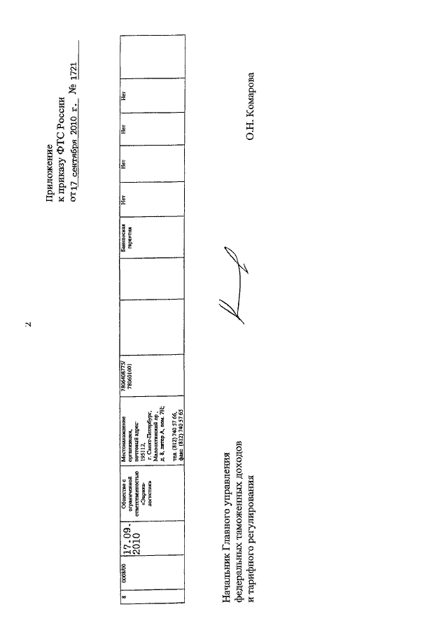 ПРИКАЗ ФТС РФ от 17.09.2010 N 1721