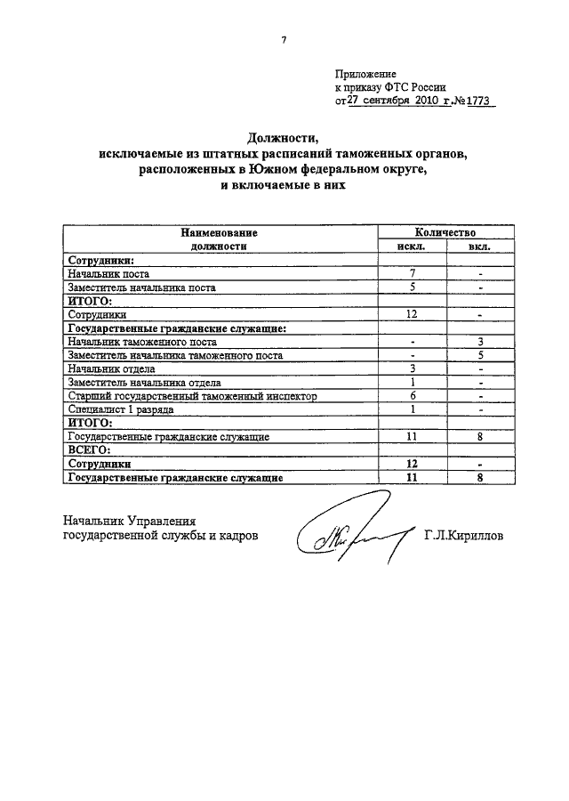 ПРИКАЗ ФТС РФ от 27.09.2010 N 1773