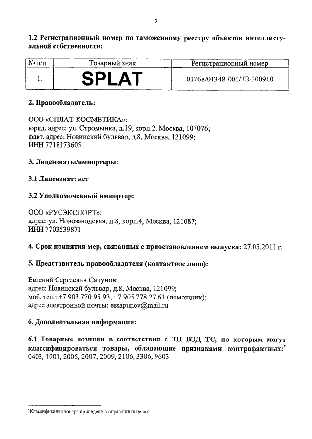 "О ТОВАРНОМ ЗНАКЕ "SPLAT"