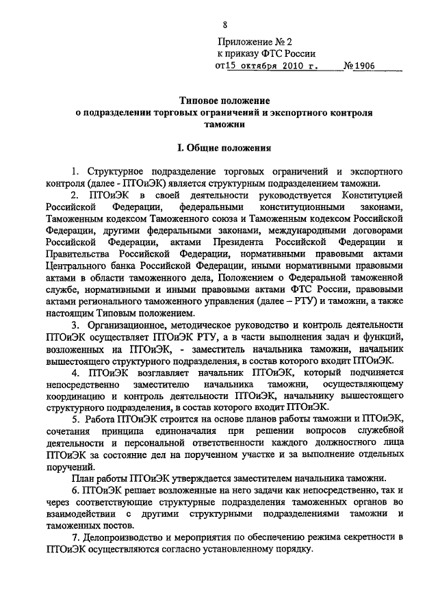 ПРИКАЗ ФТС РФ от 15.10.2010 N 1906