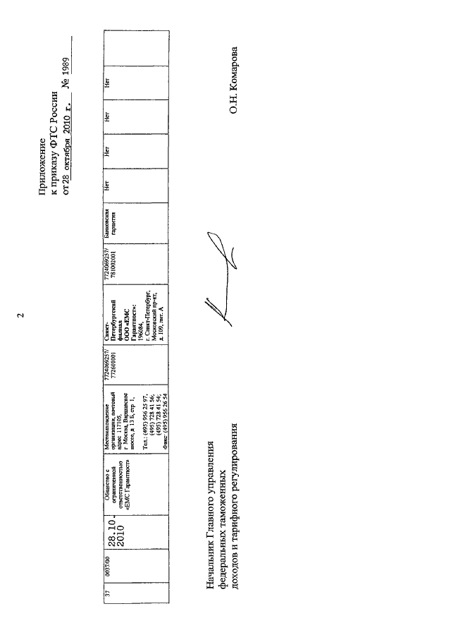 ПРИКАЗ ФТС РФ от 28.10.2010 N 1989