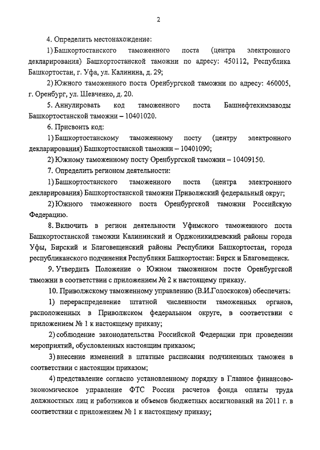 "О СОВЕРШЕНСТВОВАНИИ СТРУКТУРЫ ТАМОЖЕННЫХ ОРГАНОВ, РАСПОЛОЖЕННЫХ В ПРИВОЛЖСКОМ ФЕДЕРАЛЬНОМ ОКРУГЕ, И УТВЕРЖДЕНИИ ПОЛОЖЕНИЯ О ЮЖНОМ ТАМОЖЕННОМ ПОСТЕ ОРЕНБУРГСКОЙ ТАМОЖНИ"