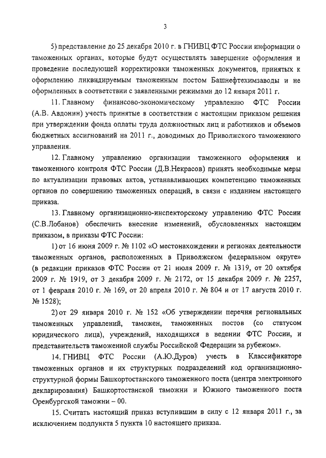 ПРИКАЗ ФТС РФ от 08.11.2010 N 2057