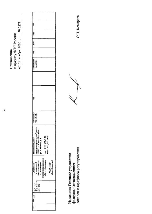 ПРИКАЗ ФТС РФ от 19.11.2010 N 2177