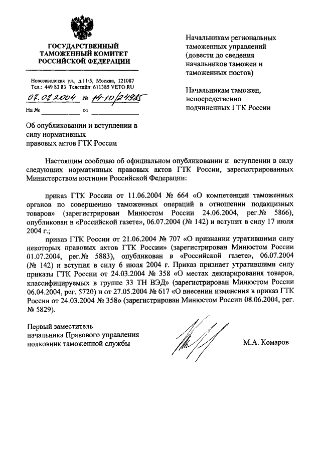 ПИСЬМО ГТК РФ от 07.07.2004 N 14-10/24985