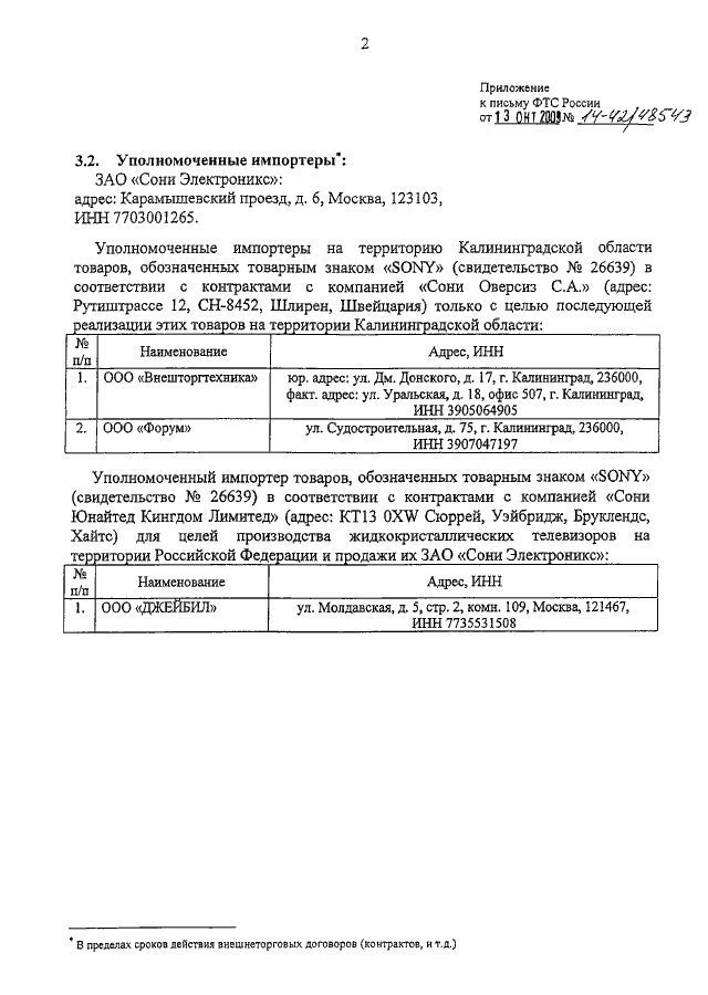 ПИСЬМО ФТС РФ от 13.10.2009 N 14-42/48543