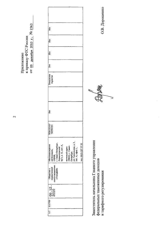 ПРИКАЗ ФТС РФ от 09.12.2010 N 2363