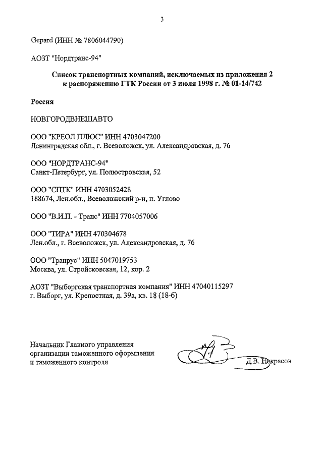 "О ВНЕСЕНИИ ИЗМЕНЕНИЙ В РАСПОРЯЖЕНИЕ ГТК РОССИИ ОТ 3 ИЮЛЯ 1998 Г. N 01-14/742"