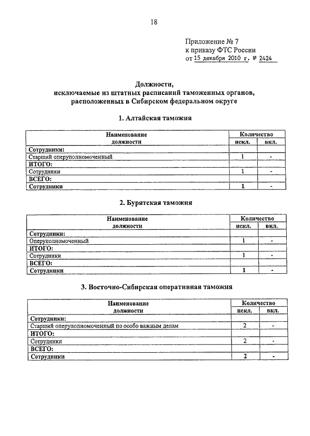 ПРИКАЗ ФТС РФ от 15.12.2010 N 2424