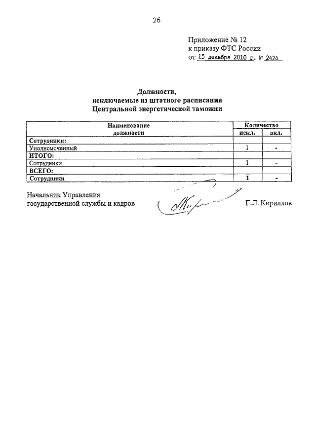 ПРИКАЗ ФТС РФ от 15.12.2010 N 2424