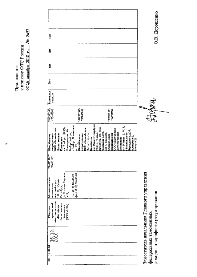 ПРИКАЗ ФТС РФ от 16.12.2010 N 2457