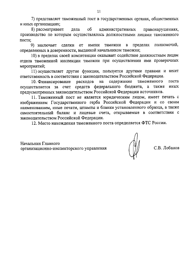 "ОБ УТВЕРЖДЕНИИ ПОЛОЖЕНИЙ О ТАМОЖЕННОМ ПОСТЕ"