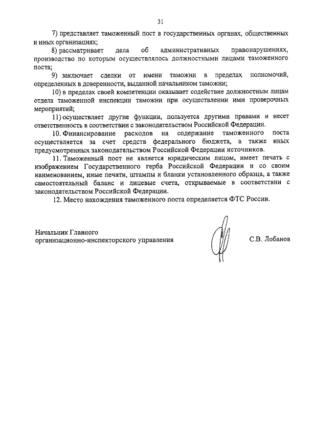 "ОБ УТВЕРЖДЕНИИ ПОЛОЖЕНИЙ О ТАМОЖЕННОМ ПОСТЕ"
