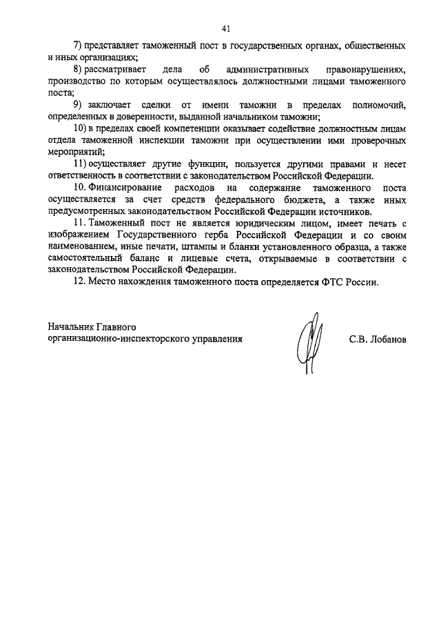 "ОБ УТВЕРЖДЕНИИ ПОЛОЖЕНИЙ О ТАМОЖЕННОМ ПОСТЕ"